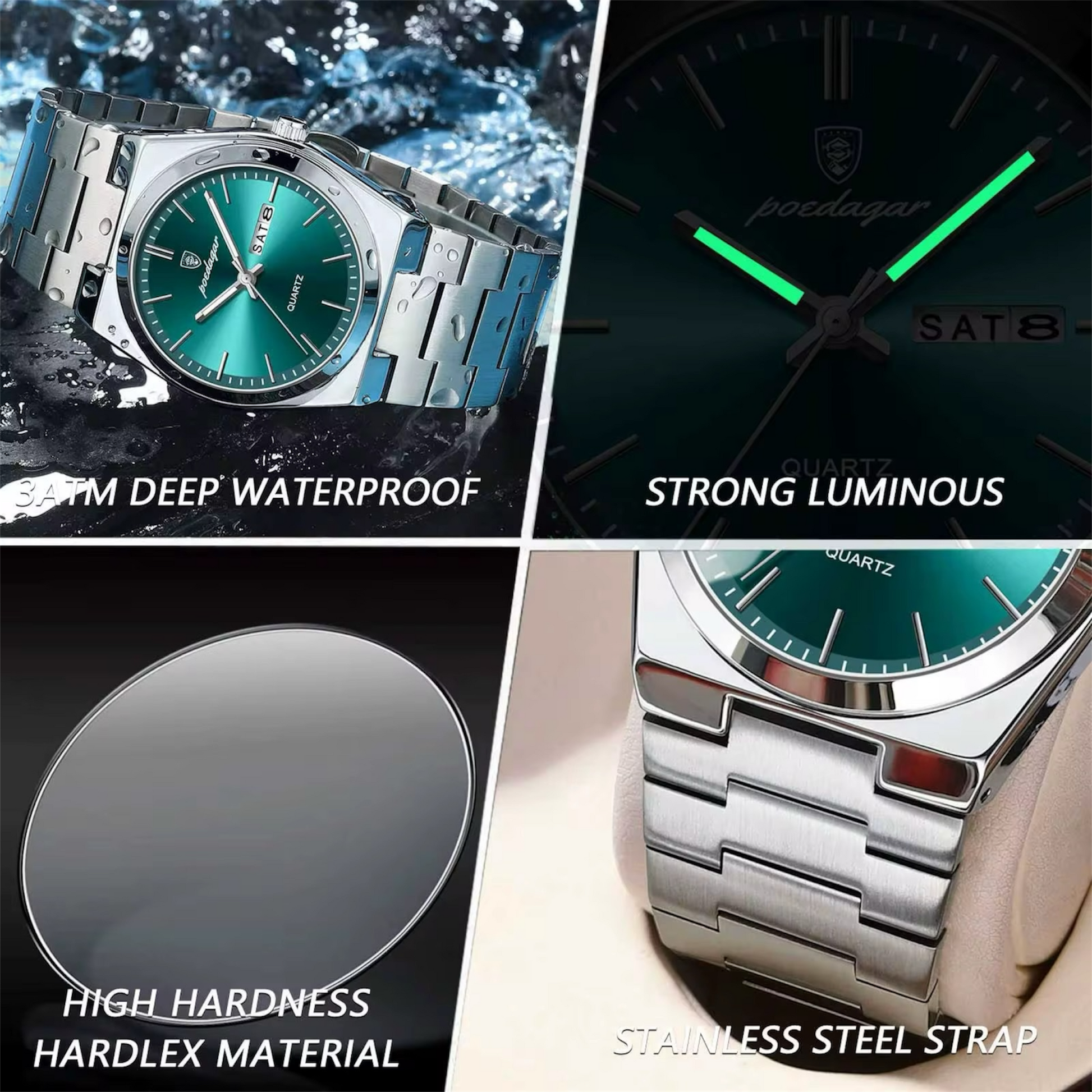 • Cadranul este fabricat din sticla minerala de cristal, acesta este rezistent la zgarieturi, dar si la lovituri.